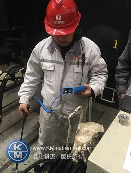 列车制动系统的好坏直接影响着列车运行的安全和质量,刹车制动系统起到至关重要的作用。在国内铁路传统的制动系统检修方法,是人工钻入机车下面,采用老式测泄露的方式在管路上涂肥皂水,这种方式比较费时费力,而且效率很低。中车成都机车车辆有限公司通过多方渠道得知KM公司代理的SDT超声波检测仪可以很好、快速地查找压力管道泄漏,于是邀请KM公司工程师携带SDT270前往客户现场交流和演示仪器。在客户现场,通过实际检测并比对涂肥皂水的方式进行了对比分析,客户领导和现场检修人员的一致认为:采用SDT超声波检测不仅可以很好地定位到泄露,而且大大地提高他们的工作效率,随即下订单采购SDT超声波检测仪。