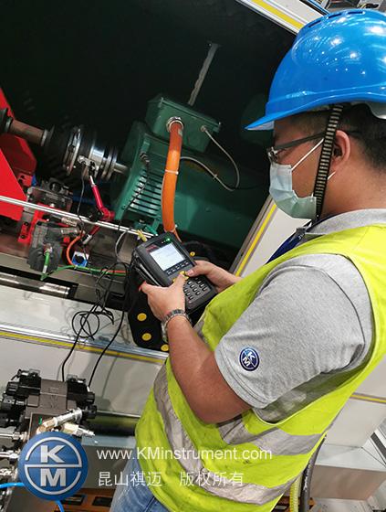 北京泰诚信测控技术股份有限公司(简称“泰诚信”)是一家为动力总成(发动机、变速箱、车桥)装配提供工艺规划、设计、制造、安装调试及交付服务等整套数字化解决方案的高新技术企业。需要对测功机进行动平衡的校正和振动分析的检测服务。KM的工程师携带KMbalancerII振动分析及现场动平衡仪现场检测了有问题的一台测功机,其振动值较大,通过振动分析主要是电机有电气故障频率,扭矩传感器有动平衡不良的问题,通过对动平衡进行了校正,从初始振动1.5mm/s下降到0.3mm/s,KMbalancerII振动分析及现场动平衡仪的精度和便捷的操作方式完全符合现场工作人员的使用,这是一次完美的携手共进合作。