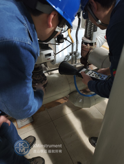 发电厂客户有真空锅炉设备气体泄漏检测的需求, KM工程师携带SDT200超声波检漏仪来到客户现场,检测出真空锅炉设备存在的泄漏点位置,与客户进行了沟通,SDT200 超声波检漏仪基于专业的超声波检测技术。超声波是一种频率高于 20kHz 的机械波,在气体泄漏、电气放电等过程中会产生超声波信号。该检漏仪通过高灵敏度的超声波传感器,能够精准捕捉这些超声波信号,并将其转换为可听声音和直观的数字信号。当设备存在泄漏时,高压气体从泄漏点喷出,与周围的空气产生摩擦,形成超声波。SDT200 能够迅速检测到这些超声波信号,并根据信号的强度和频率等特征,准确判断泄漏的位置和严重程度。对于电气系统中的局部放电现象,同样会产生超声波,检漏仪可以及时发现潜在的电气故障隐患,避免事故的发生。
